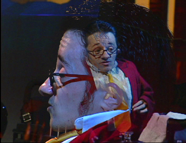 Technologist needed for this performance were; Sam Liston - Access GridTM Node Operator, Dean Brederson - Audio Engineer, Collin McDermott - Performance Manager, and Jimmy Miklavcic - Digital Mix. Director of Photography Natalie Murdock organized six Camera Operators and Assistants for every performance, with four cameras running each night. There was a live QuickTimeTM video stream of the digital mix sent out every performance from our web site, the link (that is no longer active) was http://www.anotherlanguage.org/interplay/ntds/video.html received a lot of accesses during the performance and seems to be the most readily available broadcast format for the remote viewers.